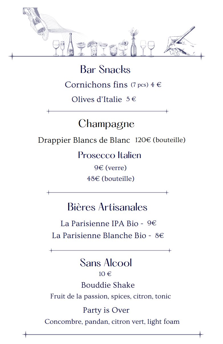 cocktail non inscrit à la carte, n'hésitez pas à vous renseigner.